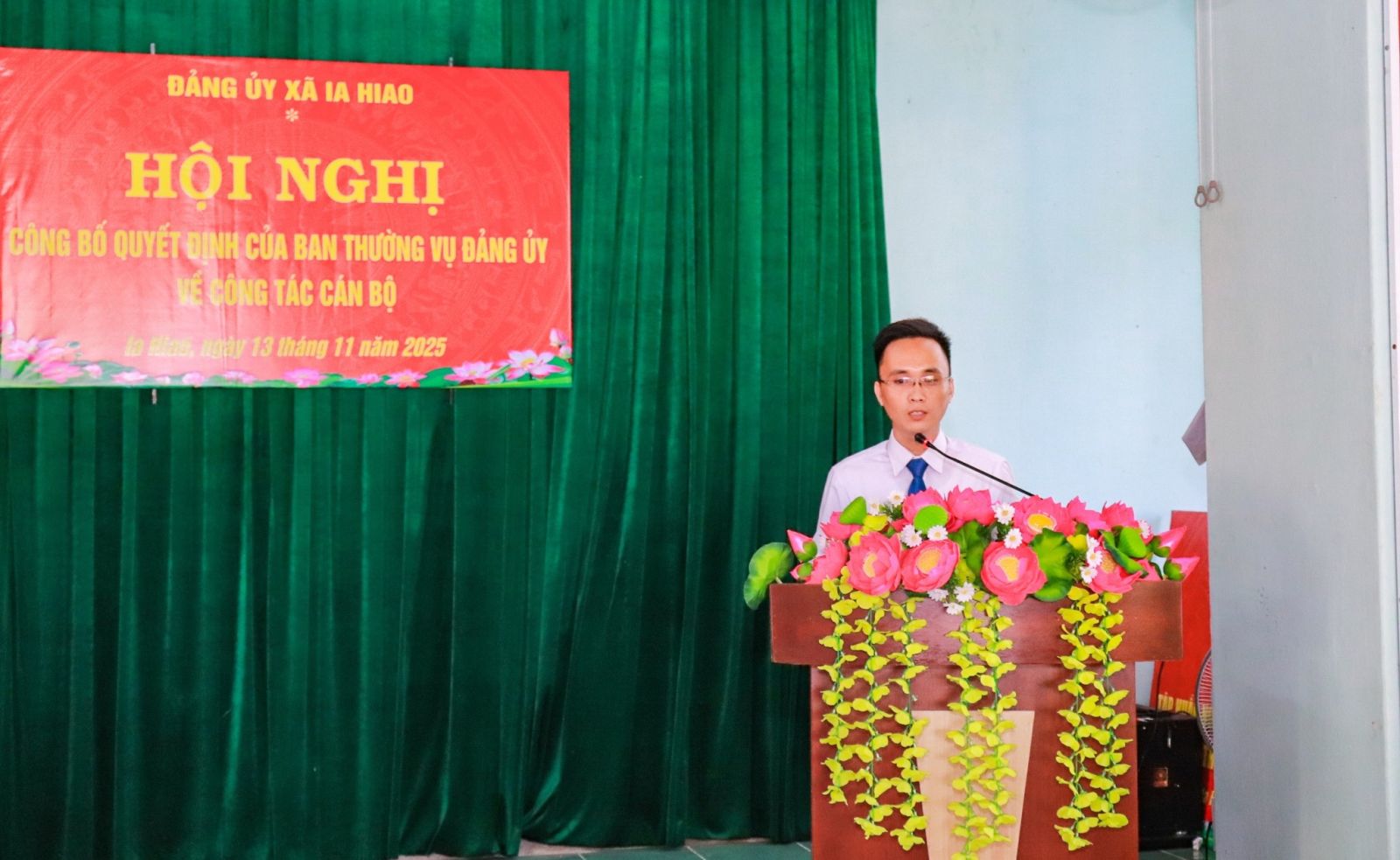 Buổi lễ diễn ra trong không khí trang trọng, đoàn kết và tin tưởng, thể hiện rõ tinh thần quan tâm, kiện toàn đội ngũ cán bộ của Ban Thường vụ Đảng ủy xã Ia Hiao, đáp ứng yêu cầu nhiệm vụ trong giai đoạn mới.