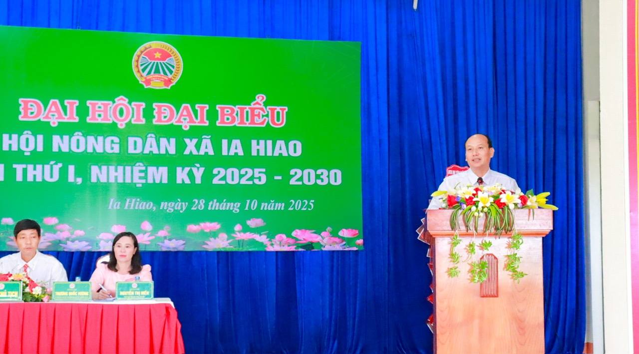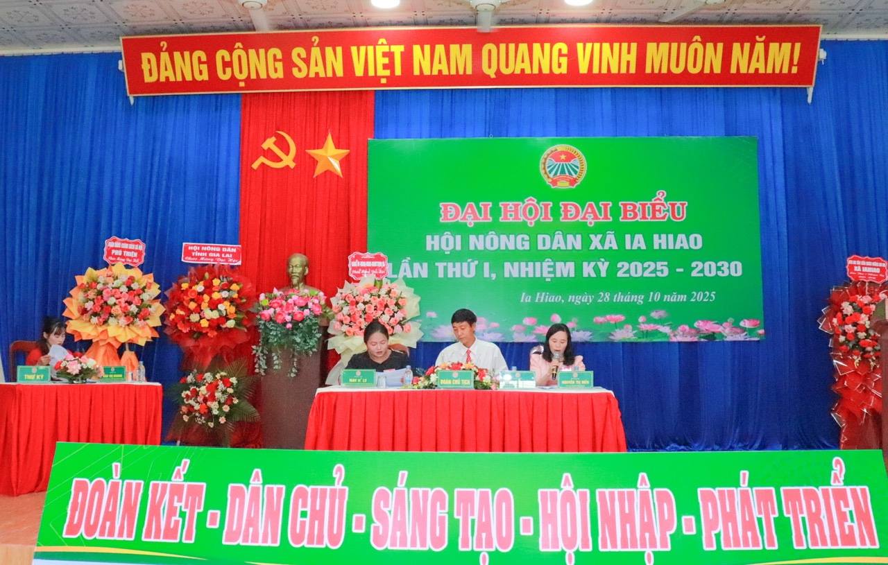 Đại hội công bố Quyết định chỉ định Ban Chấp hành Hội Nông dân xã Ia Hiao nhiệm kỳ 2025 – 2030 gồm 29 đồng chí, Ban Thường vụ gồm 05 đồng chí, đồng chí Trương Quốc Vương giữ chức Chủ tịch Hội Nông dân xã Ia Hiao. Đồng thời, đại hội công bố đại biểu đi dự Đại hội Hội Nông dân tỉnh Gia Lai lần thứ I gồm 02 đại biểu chính thức và 01 đại biểu dự khuyết.