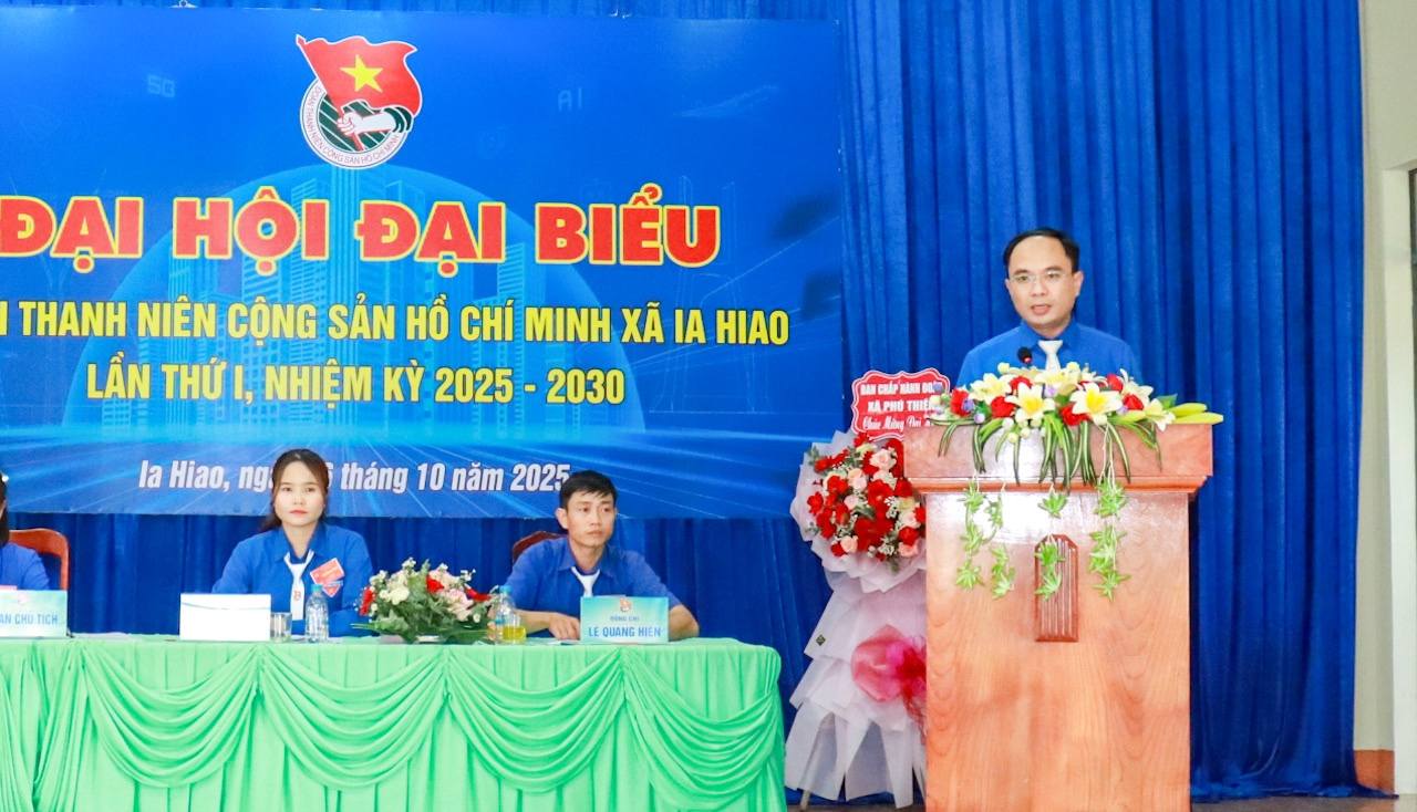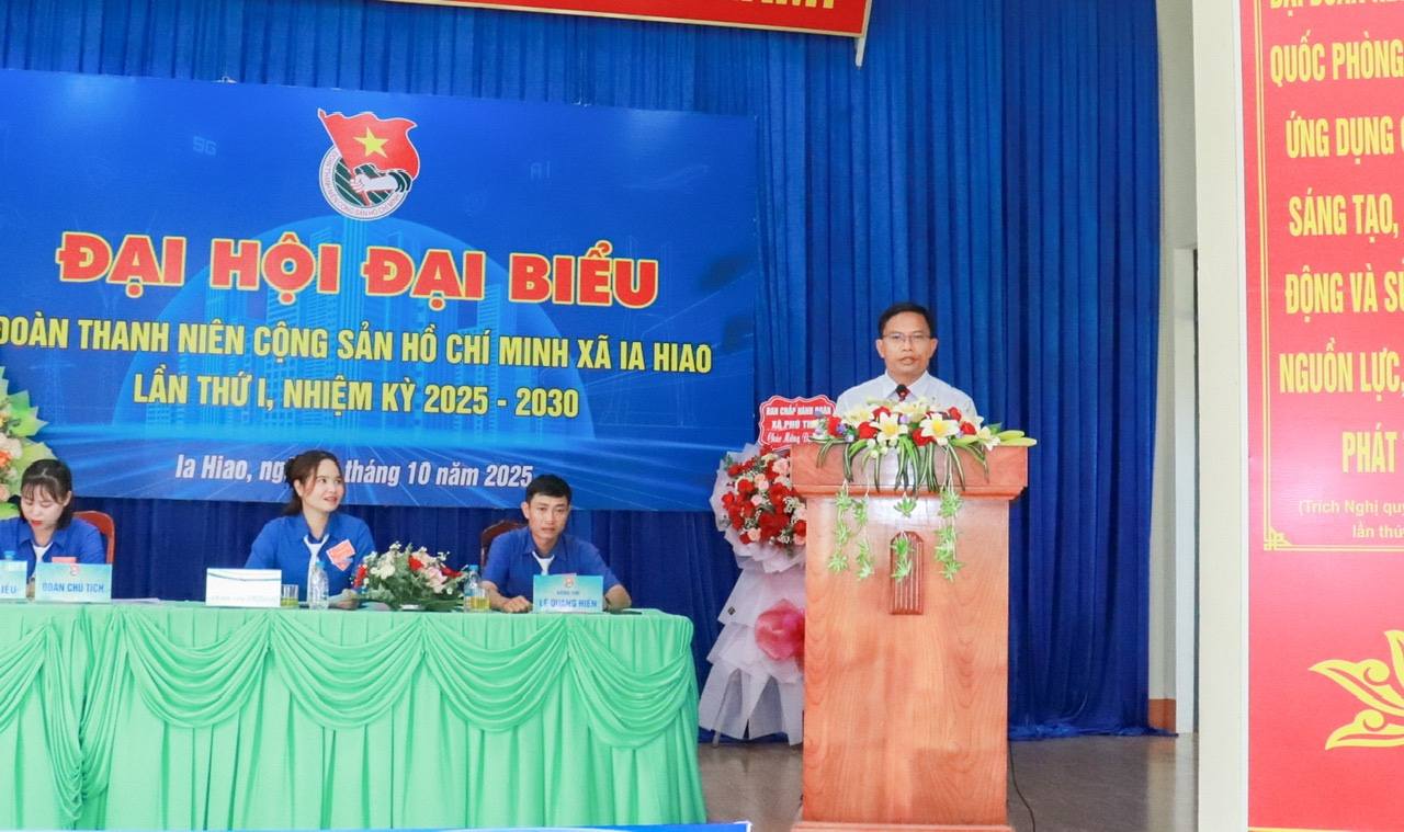 Phát biểu chỉ đạo tại Đại hội, đồng chí Đỗ Đức Thanh – Phó Bí thư Thường trực Tỉnh đoàn biểu dương tinh thần xung kích, nỗ lực của tuổi trẻ Ia Hiao trong thời gian qua, đặc biệt là trong quá trình sáp nhập địa giới hành chính và vận hành mô hình chính quyền địa phương hai cấp, yêu cầu Đoàn xã cần chủ động thích ứng, nắm chắc tình hình, kịp thời đổi mới nội dung, phương thức hoạt động để đáp ứng yêu cầu trong giai đoạn mới. Đồng chí nhấn mạnh, Đoàn cần tiếp tục đẩy mạnh công tác giáo dục chính trị, tư tưởng, nâng cao ý thức trách nhiệm công dân của thanh niên, đồng thời phát huy vai trò nòng cốt trong chuyển đổi số tại cơ sở, đưa các ứng dụng số vào quản lý đoàn viên, tuyên truyền trực tuyến, hỗ trợ người dân tiếp cận dịch vụ công và thông tin chính thống.