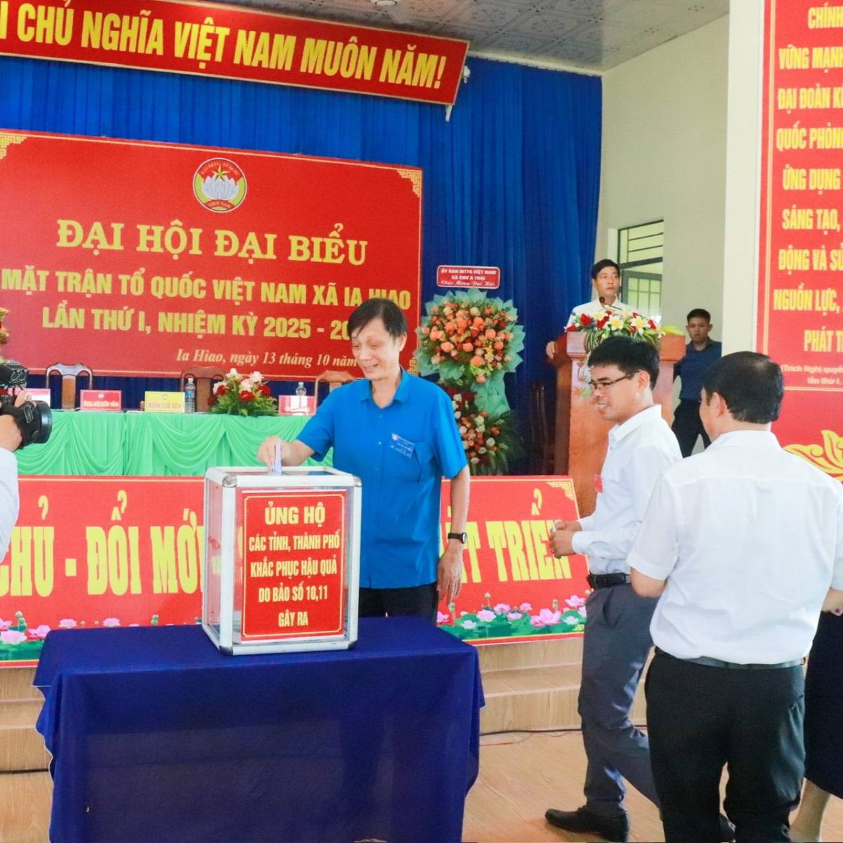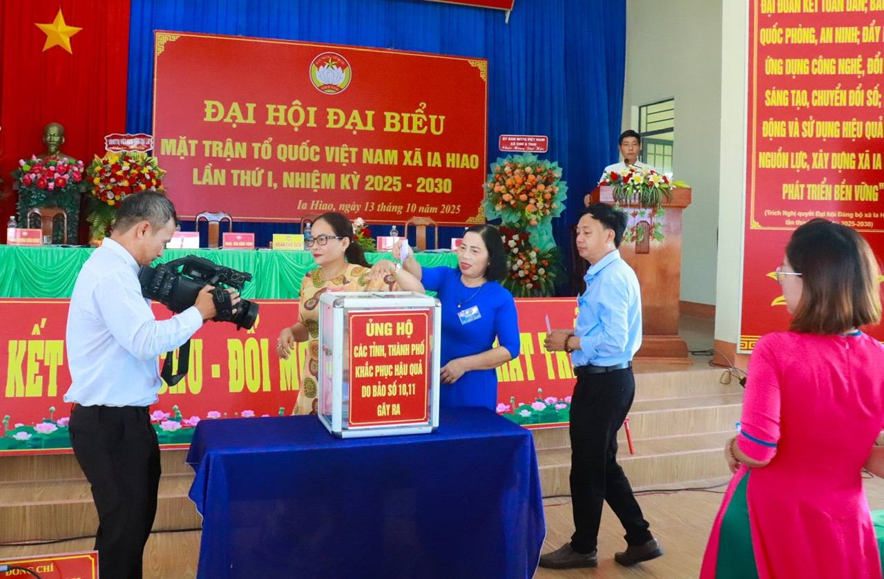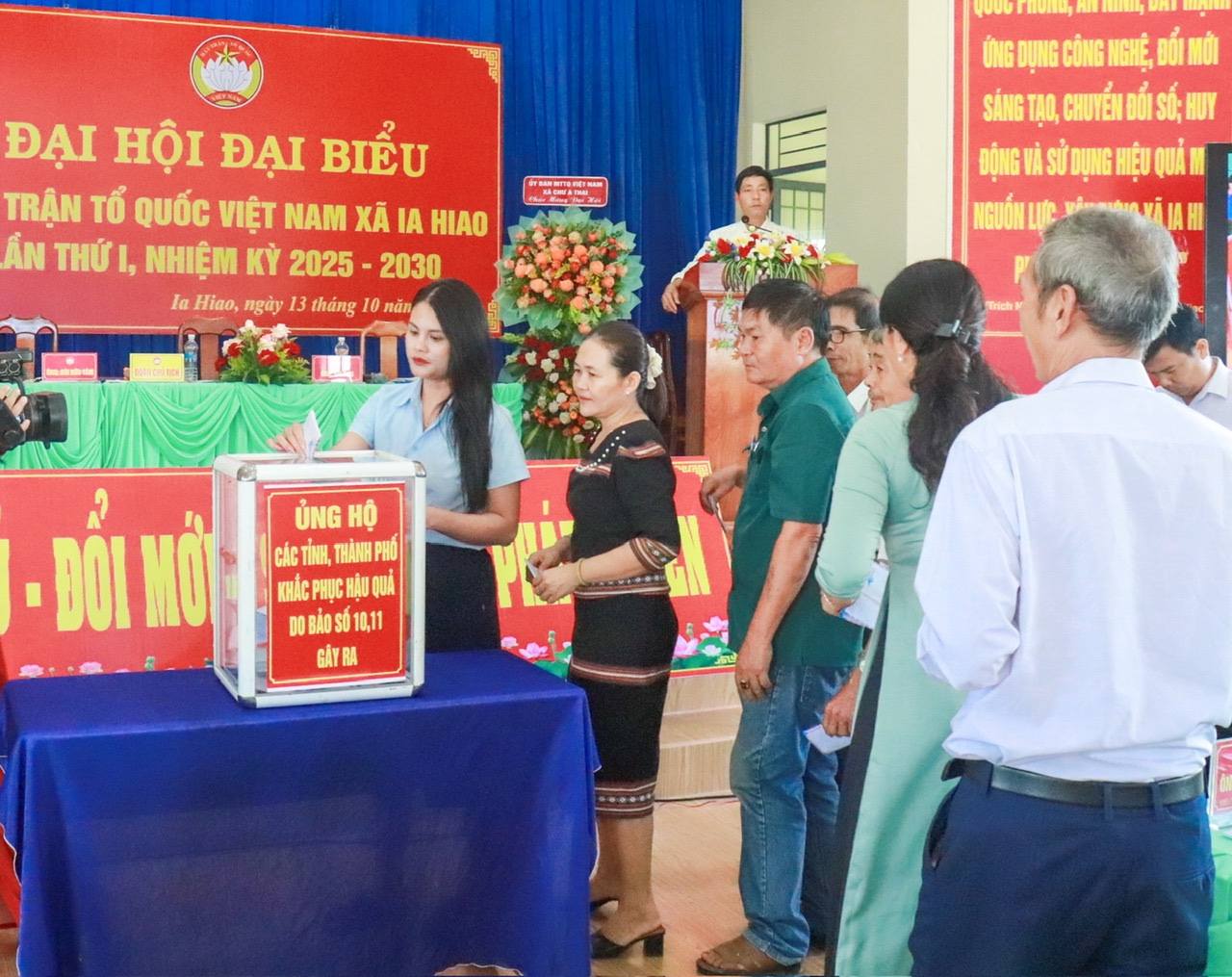 Tổng số tiền quyên góp tại đại hội được là 16.020.000 đồng, sẽ được Ủy ban MTTQ Việt Nam xã Ia Hiao chuyển kịp thời đến Ủy ban MTTQ Việt Nam tỉnh để hỗ trợ đồng bào vùng bị thiên tai sớm khắc phục hậu quả, ổn định cuộc sống.