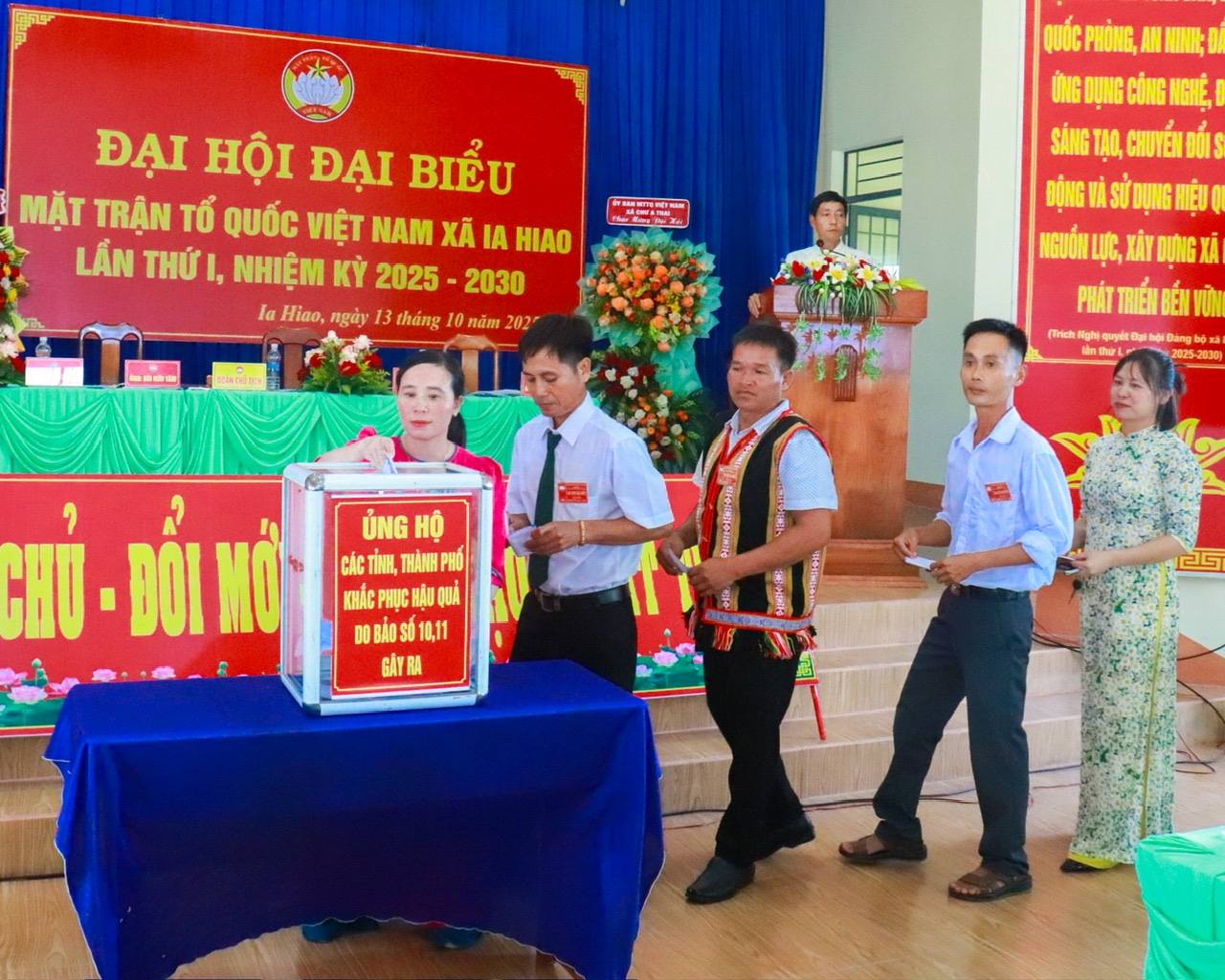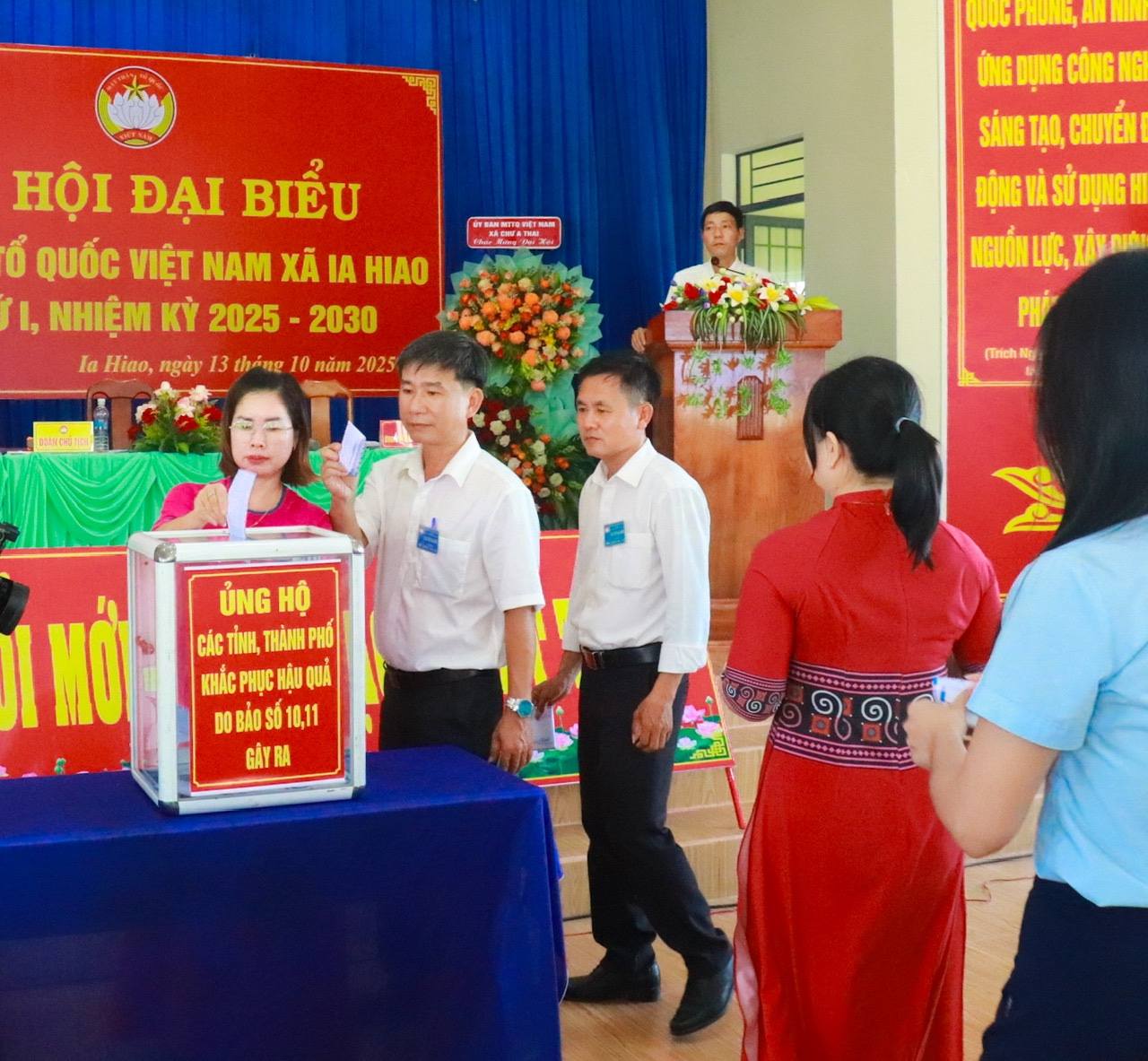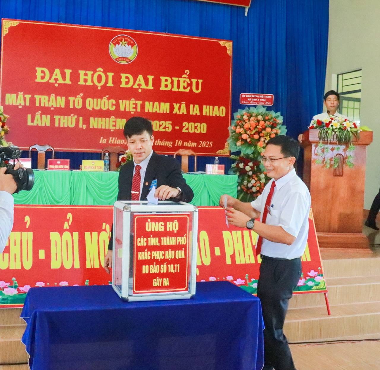 Tổng số tiền quyên góp tại đại hội được là 16.020.000 đồng, sẽ được Ủy ban MTTQ Việt Nam xã Ia Hiao chuyển kịp thời đến Ủy ban MTTQ Việt Nam tỉnh để hỗ trợ đồng bào vùng bị thiên tai sớm khắc phục hậu quả, ổn định cuộc sống.