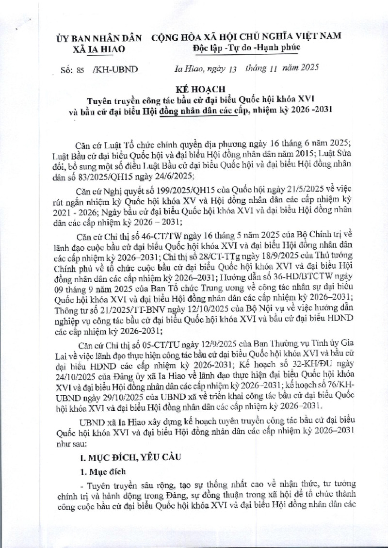 KẾ HOẠCH Tuyên truyền công tác bầu cử đại biểu Quốc hội khóa XVI và bầu cử đại biểu Hội đồng nhân dân các cấp, nhiệm kỳ 2026 -2031 24/11/2025, 14:12:43 - Lượt xem: 2 Tweet Thêm vào danh sách Báo xấu Thông tin tài liệu KẾ HOẠCH Tuyên truyền công tác bầu cử đại biểu Quốc hội khóa XVI và bầu cử đại biểu Hội đồng nhân dân các cấp, nhiệm kỳ 2026 -2031