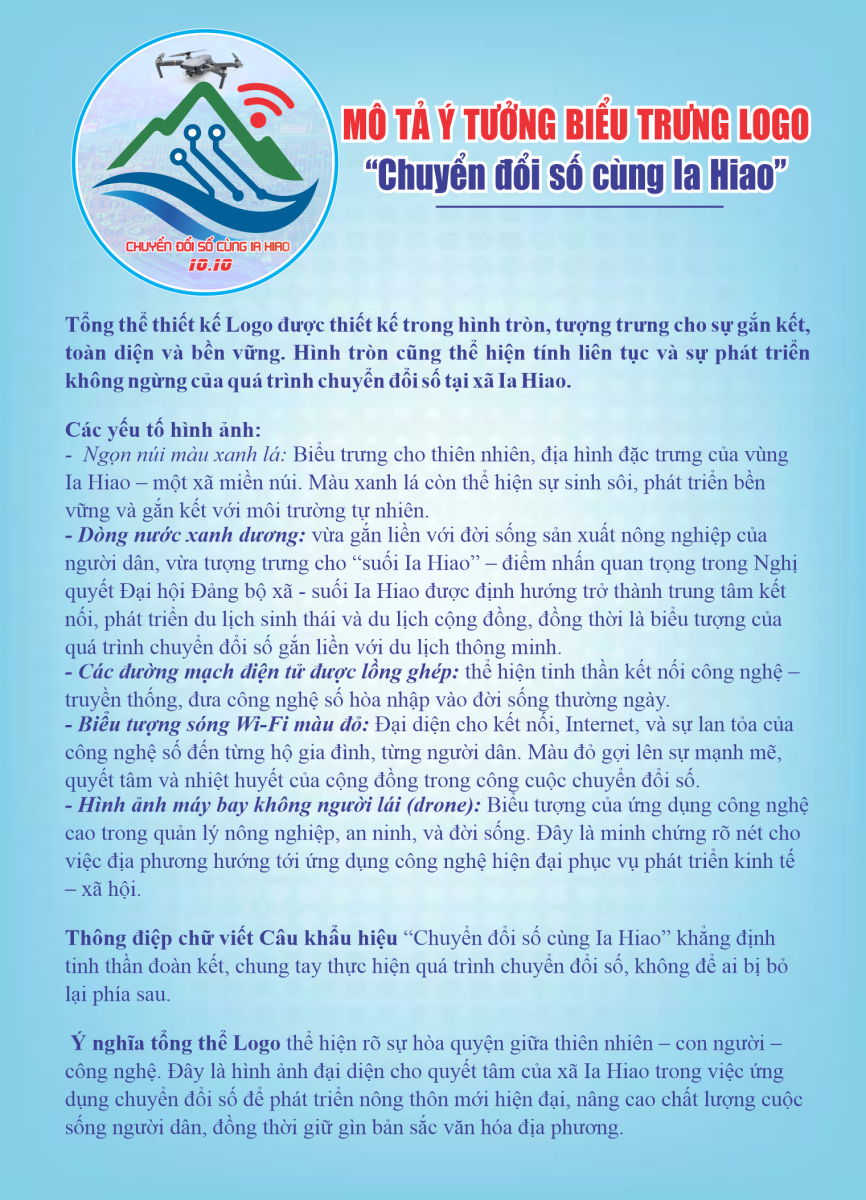 Thứ tư, 24/09/2025 | 09:06 A- A A+ | GIỚI THIỆU VÀ MÔ TẢ Ý TƯỞNG THIẾT KẾ BIỂU TRƯNG LOGO CHUYỂN ĐỔI SỐ XÃ IA HIAO Chia sẻ Đọc bài Lưu Logo được thiết kế bởi IA HIAO NGÀY MỚI ! #iahiaongaymoi#chuyendoiso