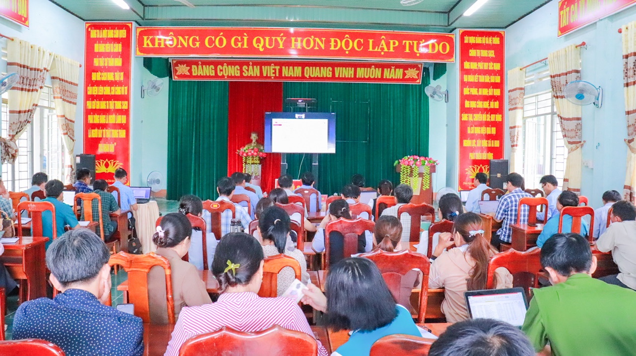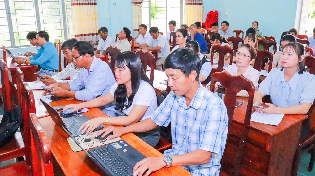 Dự và chủ trì tại điểm cầu xã có các đồng chí: Phạm Văn Phương – Bí thư Đảng ủy, Chủ tịch HĐND xã; Bùi Hữu Tâm – Phó Bí thư Thường trực Đảng ủy; Võ Hoàng Lan – Phó Bí thư Đảng ủy, Chủ tịch UBND xã. Cùng dự có các đồng chí trong Ban Chấp hành Đảng bộ xã, các đồng chí Bí thư các tổ chức cơ sở đảng trực thuộc, cùng cán bộ phụ trách công tác chuyển đổi số của các cơ quan, đơn vị trên địa bàn.
