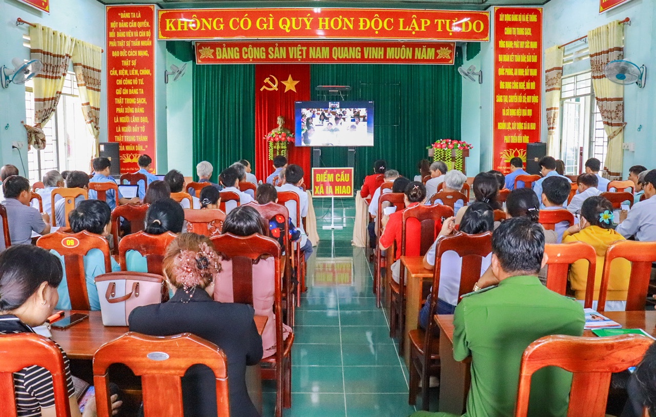 Tại điểm cầu xã Ia Hiao, các đồng chí: Phạm Văn Phương – Bí thư Đảng ủy, Chủ tịch HĐND xã; Bùi Hữu Tâm – Phó Bí thư Thường trực Đảng ủy xã và đồng chí Võ Hoàng Lan – Phó Bí thư Đảng ủy, Chủ tịch UBND xã đồng chủ trì Hội nghị. Tham dự Hội nghị có các đồng chí trong Ban Chấp hành Đảng bộ, Ủy ban Kiểm tra Đảng ủy, lãnh đạo, cán bộ, công chức, viên chức các cơ quan, đơn vị của xã và Bí thư, Phó Bí thư các chi bộ trực thuộc.