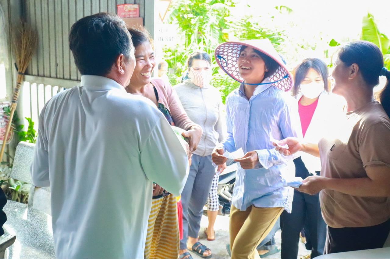Bà con hào hứng và phấn khởi đến nhận quà.