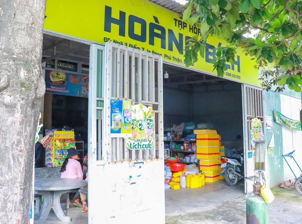 Tạp hóa Hoàng Bích trao những phần quà cho bà con.
