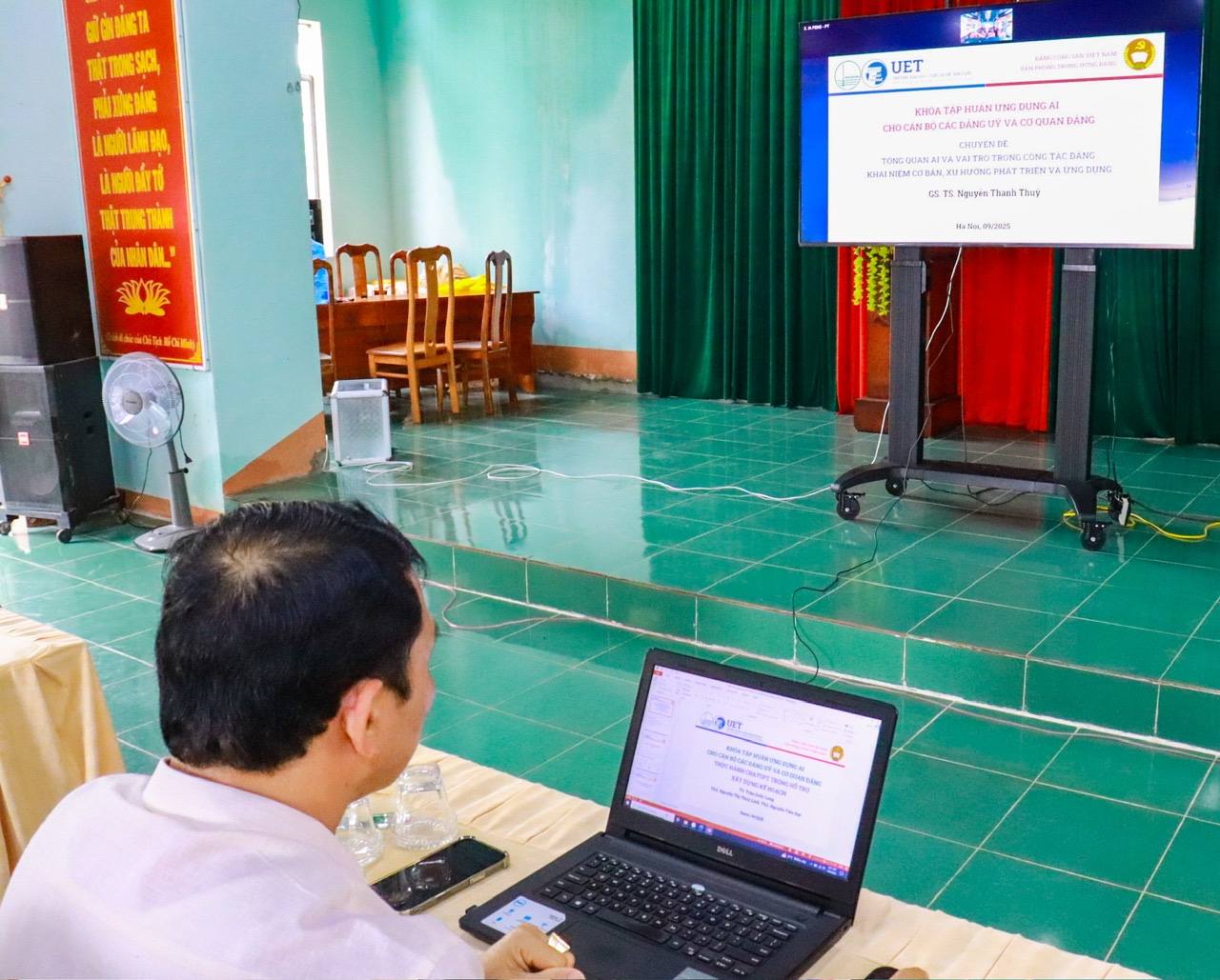 Trong chương trình, cán bộ, công chức xã sẽ được tiếp cận, thực hành với một số công cụ trí tuệ nhân tạo phổ biến như ChatGPT, Canva AI, Gemini…, từ đó vận dụng vào thực tiễn công tác Đảng: Hỗ trợ xử lý thông tin, tổng hợp nhanh chóng, chính xác; Xây dựng nghị quyết, báo cáo, chương trình công tác khoa học, hiệu quả; Đổi mới phương pháp truyền đạt, nâng cao chất lượng công tác tuyên truyền, giáo dục chính trị tư tưởng,...